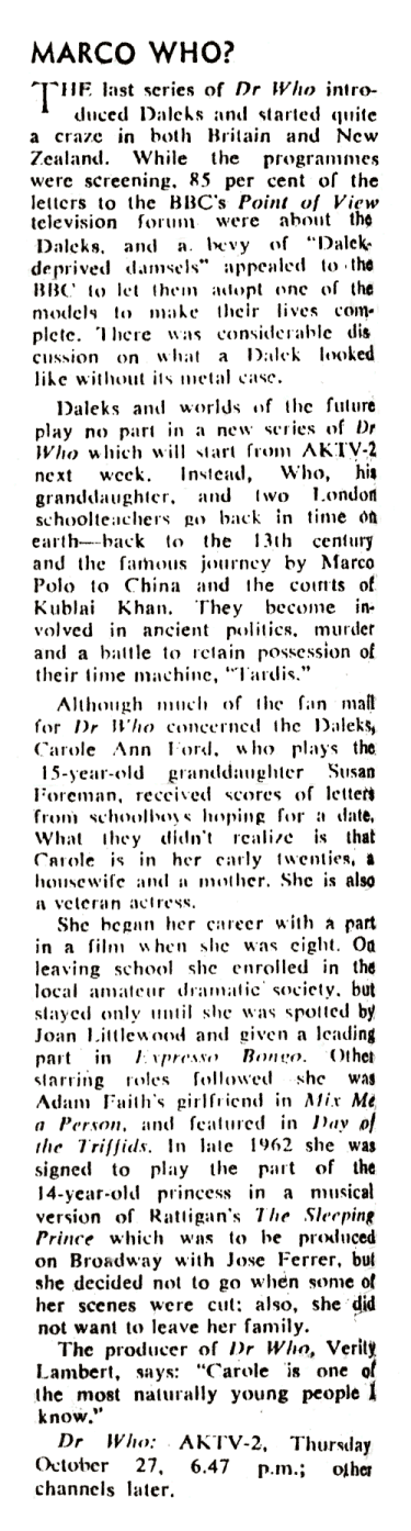 p43: Photo of the Doctor, promoting Marco Polo: Five Hundred Eyes (AKTV-2, 10/11/66)