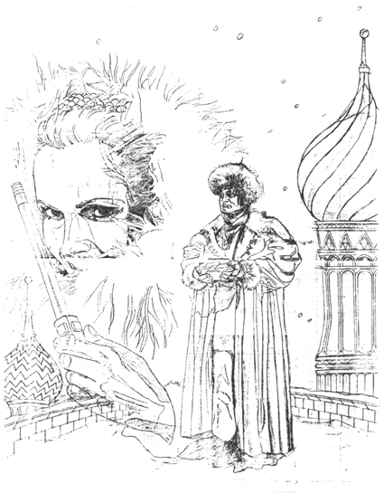 Hughes on ArtworkThe Ribos OperationBy Alistair HughesIN-VISION: THE RIBOS OPERATIONAfter completing the Leela Special cover, I then submitted six thumbnail sketches (very small roughs) to In-Vision, one for each story in the Key to Time season. Each of these 'thumbnails' was designed as a cover illustration (see the Leela Special article) and incorporated the criteria which Jeremy Bentham had explained to me at the Manopticon convention. These were that each cover illustration was to feature a main character and/or main scene from the story concerned, plus the relevant segment of the Key to Time in its disguised state. The segment in its true, crystalline form was also to appear, superimposed over the whole illustration. This last idea, which appears in my Ribos thumbnail sketch, was later, thankfully, dropped. A long period of waiting ensued after I had sent these designs, but during this time Jeremy sent me several photographs of the Key to Time segments, taken at the home of its current owner, a private collector. These have since proved to be extremely useful as I've also been commissioned to illustrate a sequence (at the top right of each In-Vision page) which shows the segments gradually fitting together. Given their irregular shapes this has been nothing short of 'mental gymnastics' to design! Despite the optimism that receiving these prints brought me, a few more weeks dragged by, and I'd just about given up on the possibility of any further In-Vision work when a nice fat envelope finally arrived from Justin Richards, the editor. It contained an outline of contributions required, and deadlines, for the entire year's issues. Not only had I been commissioned to produce the covers for the next issue The Ribos Operation and later The Androids of Tara, but various other artwork for every issue! With the Ribos cover deadline only two weeks away, I wasted no time in getting to work. THE ARTWORKI was pleased to have been given The Ribos Operation cover to do, as it was one of my favourite designs from the set of six that I submitted. In-Vision had chosen it because they liked the emphasis on Romana, rather than the Doctor, and were also confident that I could make a tight deadline (as I had done with the Leela Special cover). I wanted to use Romana as a main feature of this illustration, simply because The Ribos Operation introduces her character, and the tracer (which she is holding in her hand). Rendering her in a single colour (blue) was a last minute decision, but one which I'm very pleased with. Not only does it add to the cold atmosphere of the image, but it emphasises the 'Ice Goddess' aspect of Romana's character. Garron (lain Cuthbertson) appears as the main story character, clasping the lump of Jethrik (enlarged with artist's license) which was, of course, the disguised first segment of the Key to Time. My wife contributed her hands for this pose. The Ribos Operation is a story which had always struck me as having a very Russian flavour, so I included 'minaret-style' architecture on the skyline, based upon St Basil's Cathedral in Moscow. I was keen on this idea, as were the In-Vision editors, as it had the effect of adding an extra dimension to what was a studio-based story. Something which I am resisting in my In-Vision covers is to have Tom Baker's grinning face all over them. I feel that it's too much of a Target book cover cliché, and very limiting. The technique used for this illustration was watercolour pencil, building up colour with almost countless layers of light, almost transparent, wash. People have remarked that the illustration has a sort of 'mythical' feel, with Garron looking almost 'Hobbit-like', clutching his 'magic stone' while Romana resembles a snow queen (or maybe 'the Blue Fairy'?), holding her wand and looking on. It isn't an exciting image, but neither is the story. The script depended more on atmosphere and wit, which I've tried to reflect in my illustration. Incidentally, the initials 'I.F.' appearing in Romana's hood belong to a Scottish fan who allowed me endless access to his magazines and video collection when I needed reference material for this illustration (my own reference material happened to be 12,000 miles away.) I'm expecting Alister Pearson to sue me for copyright any day now. Illustrations
