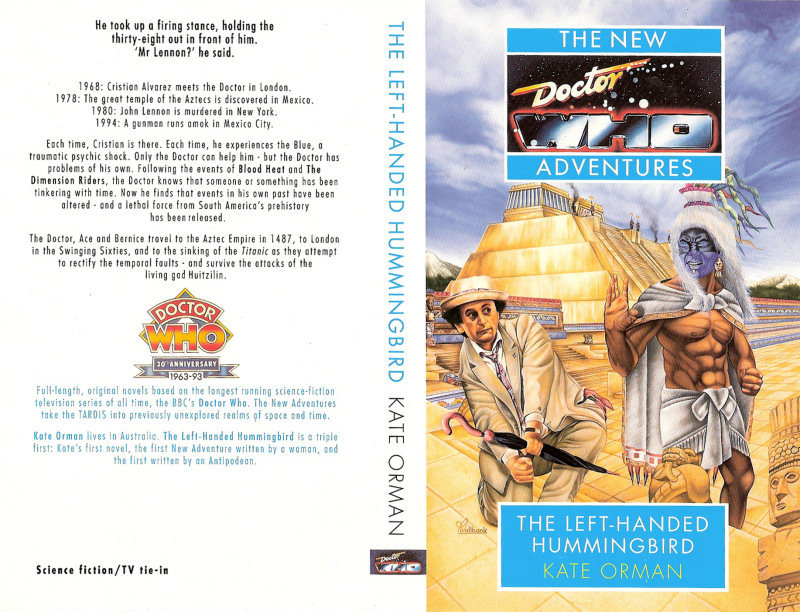 Well, it's time to stop procrastinating and start writing this long-overdue article for TSV. Because the impossible has happened: I've given birth to a book. Evening. I get home around six, throw something vegetarian into the microwave, scoff it while reading the mail. Right. Deep breath. Shut the phone up (Hi, I'm Kate and Dave's answering machine - what are you?). Put aside Dark Circus, the fan fiction, the articles for other people's fanzines, the letters, the stuff for the feminists at uni. Start up Word for Windows 2. Light strawberry incense. Attach headphones. Get the egg timer and twist the dial to one hour. Write. Do that every night for five months, and you have a New Adventure. Almost nobody except writers realise what bloody hard work writing actually is (except possibly fanzine editors...). You wake up thinking about the book, you go to sleep thinking about the book, you brush your teeth while trying to work out how to kill off one of the characters. Plot devices strike like lightning while you're in the shower - and anywhere else there isn't a pen handy. You write strange words like massage on your wrist to avoid forgetting ideas and hope nobody notices. You make notes to yourself - The butterfly effect: a tiny spanner in the works - "You died!" - which are incomprehensible the next day. But it all comes down to that one hour's work every night. It was something I learnt when writing my very first New Adventures submission, The Milk of Paradise; if you don't actually sit on your butt and write the book, nothing happens. Flashback: 1990. After five months of desperately clinging to an honours degree in genetics, my supervisor gently suggests I should consider giving it up. Let me tell you, writing's bloody hard work, but being a lab technician is harder. And the pay's lousy and science labs are full of radiation and corrosives and hideously transparent mice... and if I'd had any sense, I would've realised two things much earlier in the degree. One, I hate lab work. And two, I was writing the whole time, all five months - often when I should have been setting up an experiment. A bit of a giveaway, really. Thus ends the saga of Kate Orman, the Great Cancer Researcher. And thus begins the saga of Kate Orman, the Unemployed. You might think that the jobless have it easy. Get up in the morning, lounge around, maybe pop down to the CES in the afternoon. Yeah? Try doing nothing for six months. Nobody wants you; you have no money; you're worthless. It's like sensory deprivation. During that time, I wrote my first ever Doctor Who novel. It was crap. Watch the Skies! was partly based on a script Peter Griffiths and I were working on for the series, back in the misty past when Who was still a TV show. Peter has since gone on to become a talented director; our co-authorship taught me a great deal, but we never actually produced anything. So I salvaged Watch the Skies! and spent those despairing months hammering it into a novel. It was 27,000 words long; the average Target novelisation is about 35,000. It was thinly plotted, padded trash. But I finished it. This was a year or more before Virgin announced that they were to begin publishing the New Adventures. I'd been writing fan fiction since 1986 - in fact, the urge had first struck in 1984, because I can distinctly remember some story ideas involving Peter Davison's Doctor. In 1988 I wrote a 12,000 word epic during genetics lectures - one folder on top of the desk, the other one underneath. I spent most of my university study vacation in 1989 writing a 9, 000 word story. In 1990 I produced a short story for Jason Towers' fabulous fanzine Pirate Planet, called The Left-Handed Hummingbird - but more on this later. My instincts must've been good. Target had run out of stories to novelise. WH Allen and Virgin had just merged. Shortly after I finished Watch the Skies!, the New Adventures were announced. I still have the rather ratty photocopy of the original writer's guide, published in DWB, a publication which to this day I won't pay money for. But some kind soul, and I cannot remember who, mailed me a copy. Whoever you were, thank goodness for you. Without that guide, I wouldn't have known where to start with a submission. Thankfully, it's not necessary to write the entire 85,000 words of a New Adventure before bundling it off to Peter Darvill-Evans. You need only pen the first 15,000 words, plus a synopsis of the complete story. For a new writer, that's a fantastic way to begin - odds are you'll be rejected, but you haven't invested the phenomenal amount of energy required to produce an entire novel. A bunch of important things happened around this time. Rumours Of Martians in Epping - ROME - the writers' circle which has been absolutely essential to my writing for two and a half years - was begun. (In those days, it consisted of David Carroll and Glenn Langford, whose Brief Encounters have appeared in DWM, the magical Kyla Ward, and occasional appearances by Evan Paliatseas). Fan writer Paul Cornell's novel Total Eclipse was accepted by Virgin. And I got a bleeding job. Things were definitely looking up in 1991. Not only was I working, I was working at a library. Not only was I working at a library, I was working at Macquarie University Library. I had thought lab technicians were bizarre, brilliant people, with the strange twinkle of obsession in their eyes. I wasn't prepared for reference librarians. These people can find out anything. Mention that you're writing an article about attitudes to prostitution in Mesopotamia, and before you know it, you're up to your elbows in interlibrary loans. My boss, Robin Walsh, was invaluable in researching The Left-Handed Hummingbird; he's at least as obsessed with the Aztecs as I am (he makes a cameo as an anthropology student in the book). It doesn't hurt that Macquarie University teaches a course on pre-Columbian civilisations. But back in 1990, I was writing The Milk of Paradise, in four-thousan