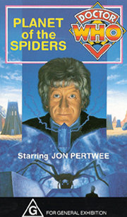 'You are not accustomed to feeling frightened, are you Doctor? You are very wise to be afraid of me!' I confess I was astonished to learn, via the Internet, that there are fans who consider Season 11 in general, and Planet of the Spiders in particular to be inferior to previous Pertwee offerings. While I would grudgingly concede there is some foundation to some of their criticisms, I've always felt Planet of the Spiders to be, for the most part, a competently devised and fond farewell to Pertwee's Doctor. For instance, I thought it a nice touch that the blue crystal, 'stolen' from Metebelis 3 by the Doctor in The Green Death, and given to Jo Grant as a wedding present, becomes the central focus of the story and the Third Doctor's ultimate downfall. And even the way Pertwee's penchant for fast and unusual vehicles is shamelessly indulged in episode two! The attempted acquisition and use of supernormal mental powers is a prominent theme in Planet of the Spiders, and it is an important motivating factor for both Lupton and the spiders behind their pursuit of greater personal power. For Lupton and the others at the meditation centre, these mind powers appear under the guise of Tibetan mysticism and its associated mind techniques, while the spiders of Metebelis 3 gain their powers from exposure to the planet's blue crystals. Perhaps surprisingly, the link between the misuse of Tibetan mind techniques and the spiders' own mind powers sit together reasonably comfortably. Of note, the concept of extraordinary mental powers is 'introduced' to the viewer via Professor Clegg, in much the same way as K'Anpo reintroduced viewers to the concept of regeneration (surprisingly the first use of the word 'regeneration' in the programme). Planet of the Spiders also explores the (related) theme of human possession by an outside force or entity. Surely one of the programme's most chilling moments is the materialisation of the Queen spider on Sarah's back, as she struggles to be free of the Queen's control... In terms of guest characters there are only a few that stand out. There is John Dearth's embittered and power hungry Lupton of course, but the surprising scene stealer is really John Kane's backward Tommy, who is a character the viewer really feels for and cares about in a way that is rare in Doctor Who. It would be difficult not to be dismayed at the prospect of Tommy's threatened demise in episode five's cliff-hanger! Special mention must also be made of the Great One, who has some wonderful lines, and whose scenes with the Doctor appropriately convey a sense of finality. Planet of the Spiders is probably at its weakest when the action shifts to Metebelis 3, specifically the human colonist village. The sets are clearly sets, and while most of the actors give it their best, the whole thing just seems to lack conviction. And some of the acting is just plain embarrassing ('No I shan't, you shan't take him, Sabor my husband, my love, why did you do it? Why, why, why? I shan't let them take you, I shan't, I shan't!' etc.). The dual time setting between Metebelis 3 and Earth is a crucial component of the plot because it explains the spiders' origins, and their interest in Earth. But because of the routine manner in which the spiders' time travel capabilities (including the ability to communicate across time and space) are presented, it is often easy for the viewer to forget that there is a time difference. We are led to conclude that the spiders' powers make such feats relatively easy to perform, whereas with a little more explanation and justification, the time difference could have seemed less of a contrivance. On its original transmission, I remember the final regeneration scene to have been genuinely moving ('A tear, Sarah Jane?'), and while the passing of the years may have dulled its impact, it still manages to evoke a slight tweak of nostalgic sadness. This item appeared in TSV 49 (November 1996). | |